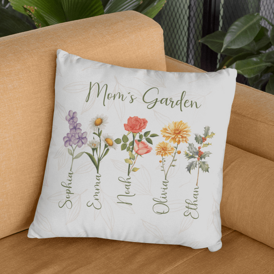Custom Birth Flower Pillow - Mom's Garden with Names, Gift for Mom´s, Auntie´s, Grandma´s