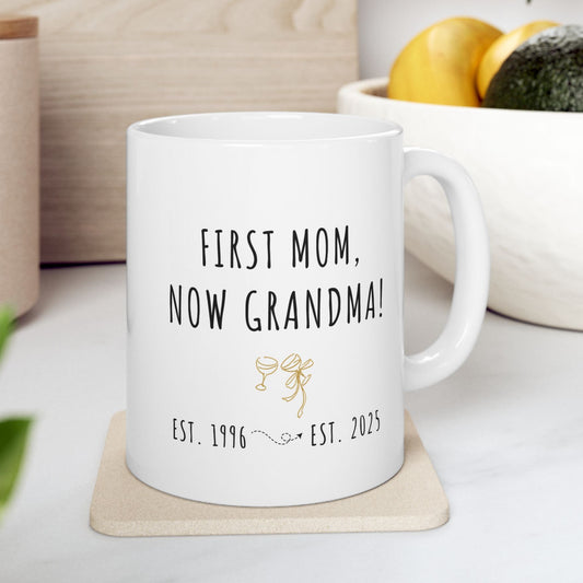 Custom Grandma Mug â First Mom, Now Grandma â Sentimental Gift for Mother's Day or Baby Reveal