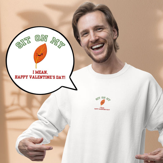 Funny Embroidered Valentineâs Day Sweatshirt, Sit On My (Leaf Face) â Verdant Blossoms