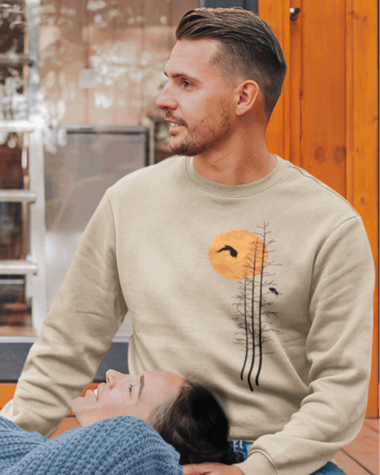 Men's Nature Sweatshirt -Forest Graphic Sweater with Minimalist Sunset
